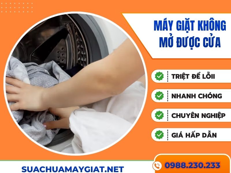 - Cửa máy giặt không mở được dù đã nhấn nút mở nhiều lần.