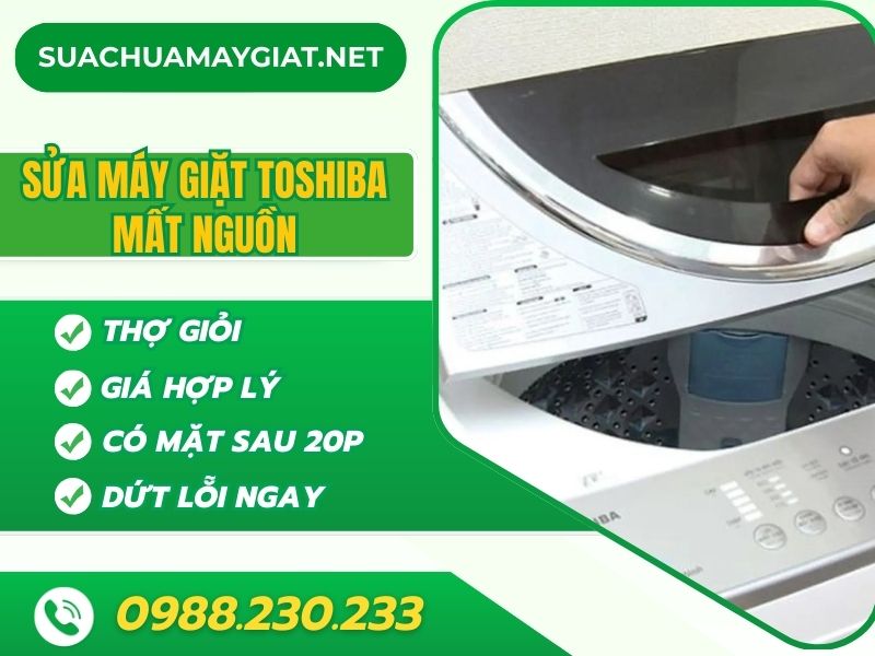 Nếu máy giặt Toshiba mất nguồn, hãy kiểm tra lại điện, dây cắm và thử reset máy giặt Toshiba trước. Nếu vẫn không lên nguồn, nhiều khả năng máy đã hư bo mạch và cần được kiểm tra bởi thợ sửa máy giặt Suachuamaygiat.net
